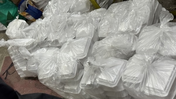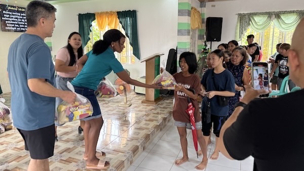 Passing out food for these poor people to take home