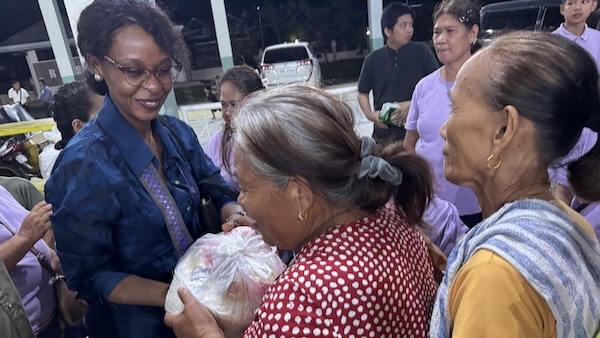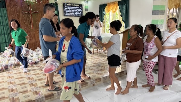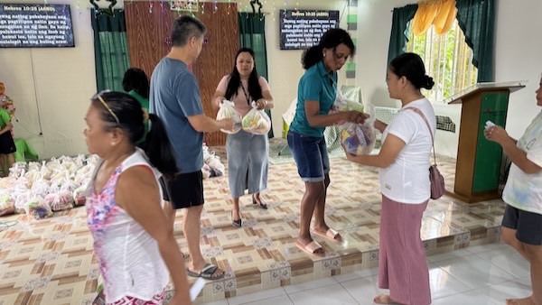 Passing out food packages