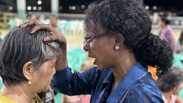Dr. Adalia prophesying and praying over people