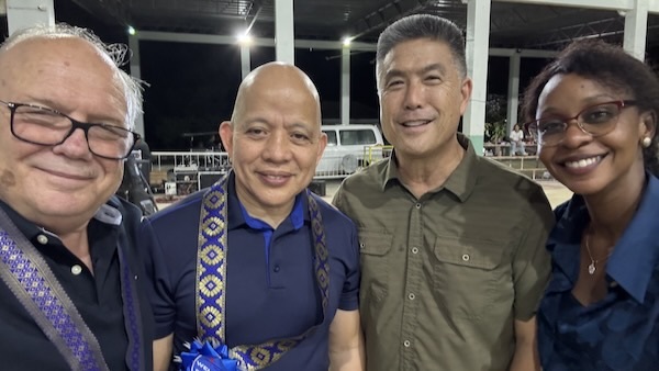 We departed from Seattle on November 19, 2025 and landed in the Philippines on the 20th. Our journey involved a flight from Seattle to Korea, followed by a layover before reaching the Philippines. International travel is indeed quite tiring. My World Ministries International (WMI) team included my wife, Dr. Adalia Hansen, my son MJ, and Dr. Mike Hyodo. Bishop Israel Sanoy of Love Fellowship Church International (LFCI) and others welcomed us at the airport with a lovely sign.