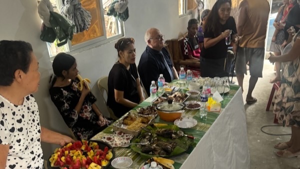 On Sunday, the 23rd, we traveled to the LFCI Cabanatuan, Nueva Ecija branch, where I addressed the Church's Responsibility to save the Philippines. My wife offered prayers, resulting in many healings. Following the service, we were hosted at a member's house, where we were served balut, a hard-boiled duck egg with feathers inside the shell. It was quite an experience, as they considered it a rite of passage to becoming Filipino. We then dedicated the Rizal LFCI branch, prayed for the neighbors, and visited entrepreneur Edwin Canlas, interviewing him and Bishop Sanoy for my television program.