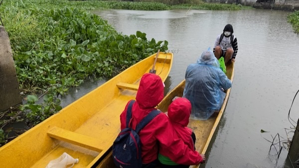 We traveled in canoes to the flooded areas