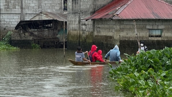 Traveling in a canoe in the flooded areas