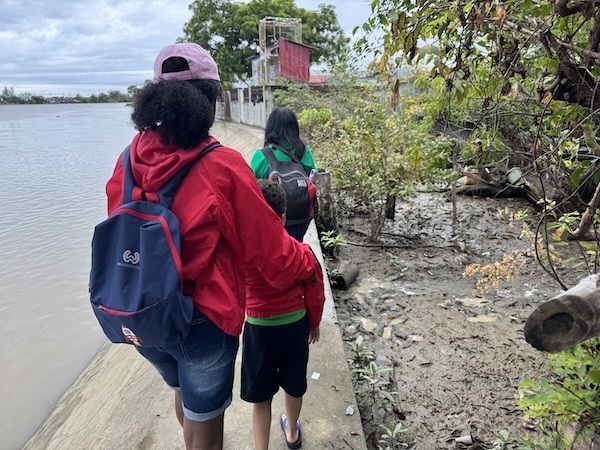 Walking on the dike, as the area was flooded.